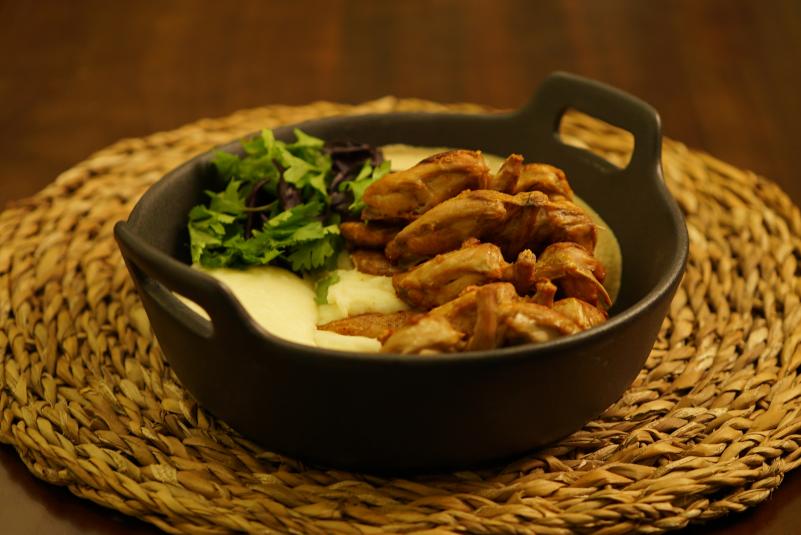 მწყერი ელარჯით და ნუშის ბაჟეთი